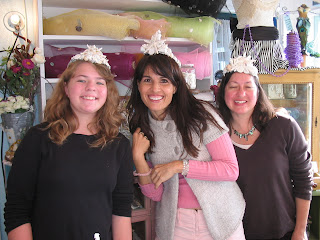 Lisa Loria was painting on vintage wig heads, Rita Reade was teaching some gals how to solder a vintage bottle. Gina was stamping antique silverware into glorious pendants, Erin was wire wrapping, Nicki and Kimberly were needle felting and I was teaching some lovely ladies how to make seashell letters and a seashell tiara. Just look at their faces… don’t they look happy! I had never taught a class before so this was really a fun and rewarding experience for me!